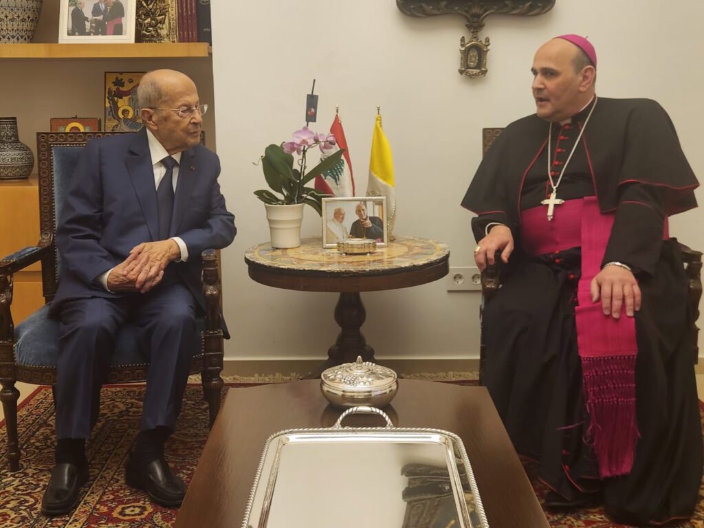 زار الرئيس العماد ميشال عون السفارة البابوية في حريصا وقدّم التعازي الى السفير البابوي باولو بورجيا بوفاة قداسة الحبر الأعظم البابا فرنسيس.