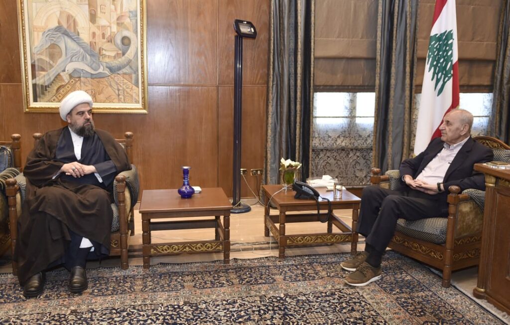 إستقبل رئيس مجلس النواب نبيه بري في مقر الرئاسة الثانية في عين التينة سماحة المفتي الجعفري الممتاز الشيخ أحمد قبلان حيث جرى بحث لتطورات الاوضاع العامة والمستجدات السياسية والميدانية.