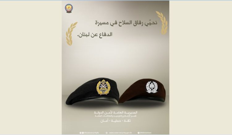 كتبت المديرية العامة لأمن الدولة على حسابها على منصة “X“: “نحيي رفاق السلاح في مسيرة الدفاع عن لبنان”.