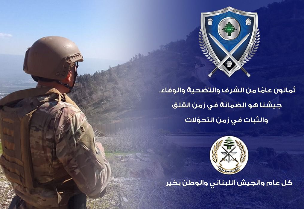 كتب وزير الداخلية والبلديات أحمد الحجار على منصة “X“: “ثمانون عامًا من الشرف والتضحية والوفاء. جيشنا هو الضمانة في زمن القلق، والثبات في زمن التحوّلات. هو عنوان السيادة، وركن الدولة الأساسي في بسط سلطتها على كامل أراضيها. تحيّة لكل جندي، لكل ضابط، لكل شهيد سقط دفاعًا عن لبنان. كل عام والجيش اللبناني والوطن بخير”.