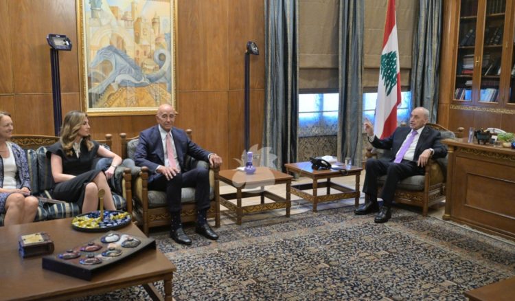 إستقبل رئيس مجلس النواب نبيه بري الموفدين الأميركيين توم برّاك ومورغان أورتاغوس في عين التينة.