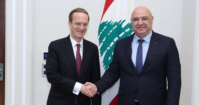 أبلغ رئيس الجمهورية العماد جوزاف عون نائب الأمين العام للسلام والامن والدفاع في جهاز العمل الخارجي الأوروبي شارل فرايز CHARLES FRIES خلال استقباله قبل ظهر اليوم في قصر بعبدا، في حضور سفيرة الاتحاد الأوروبي سندرا دي وايل Sandra De Waele، “ترحيب لبنان بأي دعم يقدمه الاتحاد الأوروبي للجيش والقوات المسلحة اللبنانية لتعزيز دورهم في حفظ الامن والاستقرار على الأراضي اللبنانية كافة”.
