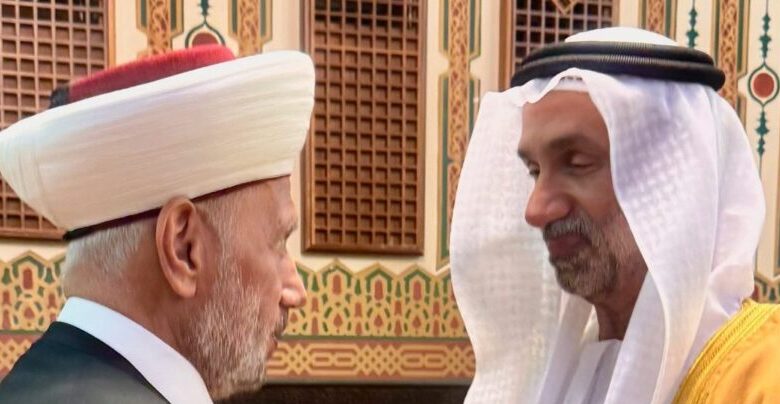 إستقبل مفتي الجمهورية اللبنانية الشيخ عبد اللطيف دريان في دار الفتوى رئيس “المجلس العالمي للتسامح والسلام” أحمد الجروان الذي قال بعد اللقاء: “قدمنا عرضا لفضيلته عما تحمله رسالة المجلس العالمي للتسامح والسلام وكان ضروريا ان نتوقف في دار الفتوى ونعرض على سماحته رؤية المجلس العالمي للتسامح وما لمسناه من سماحته بأن هناك رؤية داعمة للمحبة والسلام ودعم ودفع مسيرة المجلس على ما نتمناه وخصوصاً الشعب اللبناني المحب للحياة والسلام وشعب يتطلع الى رؤية متفاعلة مع المجتمع الدولي لذلك توقفنا في دار الفتوى لنسمع ونأخذ بنصائحه ودعمه للعمل الداعم لنشر قيم التسامح والسلام وهذه كلها تعطي رسالة بأن الشعب اللبناني بكل مكوناته إيجابي لذلك لا بد ان نكون متفاعلين مع هذه الإيجابية وإن شاء الله تستمر هذه اللقاءات وبخاصة ما سمعناه من سماحته بأن دار الفتوى داعمة للمجلس”.