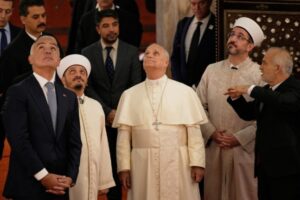 وكان البابا زار المسجد في بداية يوم مكثف من الاجتماعات والطقوس الدينية مع كبار رجال الأديان في تركيا وقداس للجالية الكاثوليكية الصغيرة في البلاد.