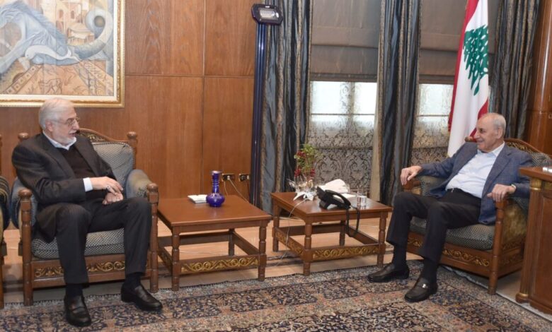وبعد الظهر التقى الرئيس بري مدير مكتب المرجع الاعلى الامام السيد علي السيستاني في لبنان الحاج حامد الخفاف.