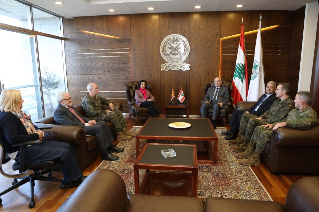 وجرى خلال اللقاء عرض الأوضاع في جنوب لبنان، وقد نوّهت وزيرة الدفاع الإسبانية بالجهود المميّزة التي تبذلها المؤسسة العسكرية في تنفيذ خطة الانتشار، كما أثنت على مستوى التنسيق القائم بين الجيش اللبناني والوحدة الإسبانية العاملة في إطار اليونيفيل. وأكّدت التزام بلادها مواصلة دعم لبنان والجيش اللبناني في مختلف المجالات الممكنة.