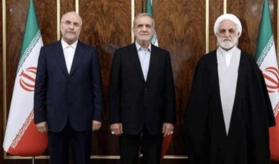 أكد قادة السلطات التنفيذية والتشريعية والقضائية في ايران، الرئيس مسعود بزشكيان، ومحمد باقر قاليباف وحجة الاسلام والمسلمين غلام حسين محسني ايجئي رسالة مشتركة للشعب الايراني ثمنوا فيها “وعي ويقظة الشعب الايراني في إفشال المؤامرات المعادية التي تستهدف وحدة ايران”، مؤكدين أنهم يعتبرون انفسهم “ملزمين ببذل الجهود ليلاً ونهاراً لحل المشاكل المعيشية والاقتصادية للشعب وتوفير الامن له”.