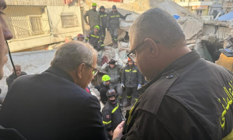 كما اطّلع من مسؤول الدفاع المدني في طرابلس واصف كريمة على الإجراءات المتّخذة وآخر المعطيات المتعلّقة بعملية البحث والإنقاذ، وأجرى اتصالًا من الموقع مع مدير الدفاع المدني العميد عماد خريش.