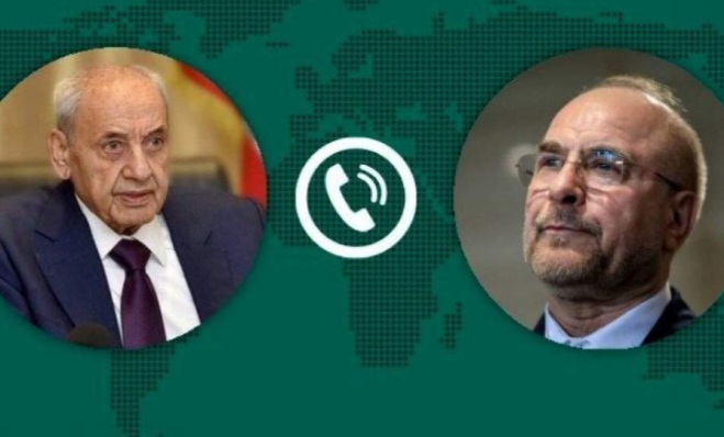 تلقى رئيس مجلس النواب نبيه بري اتصالاً هاتفيا من رئيس مجلس الشورى في الجمهورية الاسلامية الايرانية محمد باقر قاليباف.