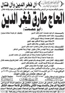 “الانتشار” الذي آلمه النبأ وحزن لفقدان رجل برع في نسج العلاقات بين الكبار يتقدم من أسرته العزيزة، وخصوصا من نجله الحبيب عصمت وأبنائه وزوجته الكريمة واصدقائه وأحبابه الكُثر، بأصدق التعازي داعين الى الله عز وجل أن يتغمد الفقيد بواسع رحمته ويسكنه فسيح جناته.