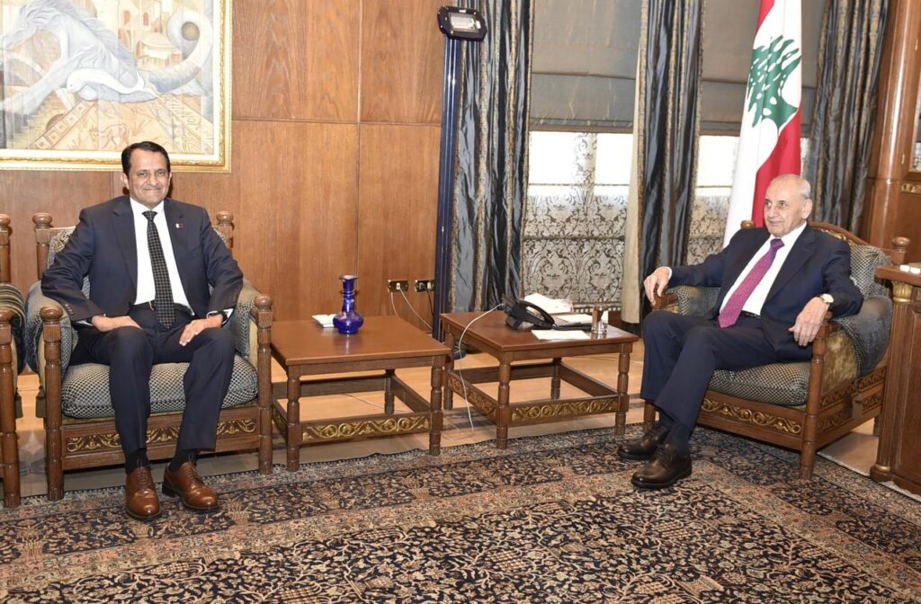إستقبل رئيس مجلس النواب نبيه بري في مقر الرئاسة الثانية في عين التينة، سفير دولة قطر لدى لبنان الشيخ سعود بن عبدالرحمن آل ثاني. وتم البحث في تطورات الاوضاع في لبنان والمنطقة والمستجدات السياسية والميدانية والعلاقات الثنائية بين لبنان وقطر.